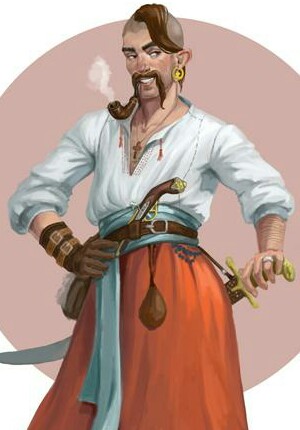 | Przez lata służył na kupieckiej fregacie, więc nie raz zdażyło mu się słyszeć rozmowy kupców oraz ich podniesione głosy podczas negocjacji cen za towary. | |