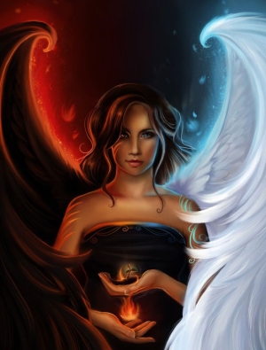 ~Historia Isolde ~<br><br>Jej rodzina była zwyczajna, jedna z wielu w Niebie. Jej rodzice, Blane i Fiona byli przykładnymi Aniołami, zawsze stawiali służbę na pierwszym miejscu, nawet przed córkami. Zresztą Isolde niewiele to obchodziło, zapatrzona była, jak w obrazek, w starszą o 5 lat siostrę – Keirę. Imponowała jej niemal wszystkim od umiejętności i wiedzę po sposób bycia i radzenie sobie na misjach. Dlatego też Isolde od najmłodszych lat szła krok w krok po ścieżce wydeptanej przez starszą siostrę, łapiąc te same książki, tą samą broń, ćwicząc tą samą magię. Jakkolwiek matka nie starała się jej ukształtować na Uzdrowicielkę, Isolde chłonęła wszystko co mogła, w zastraszającym tempie i z ogromnymi sukcesami, lecz zaraz biegła z zakasaną spódnicą do ojca, prosząc o nauki walki. Chociaż poległa przy próbach ogarnięcia umysłem bardziej skomplikowanej taktyki i zasad maszyn oblężniczych, okazała się jednak mistrzynią w walce sztyletami. Podczas dłuższej nieobecności siostry, która wyruszyła na misję na Ziemię, Isolde poświęcała ćwiczeniom walki każdą wolną chwilę, zmuszając nawet ojca do ustąpienia jej pola i zwrócenia się do przyjaciela z prośbą o trenowanie córki. Chłonna wiedzy młoda Anielica w oczekiwaniu na własny przydział, poświęcała całe dnie nauce magii Życia, lecząc powracające z Misji Anioły, magii Wody, dbając o powierzony jej sad i potajemnie trenując walkę wodnym biczem oraz magii Struktury, sięgając poza granice narzucone przez kształty. Nocami wymykała się by ćwiczyć uniki, walkę wręcz, walkę sztyletami i strzelanie z łuku. W końcu ukochała sobie jednak sztylety i wbrew karcącym spojrzeniom matki, nie rozstawała się z nimi na krok.<br><br>Gdy po dłuższym czasie Keira wróciła z misji, była wzburzona i nie zwracając na siostrę uwagi popędziła do Pana. Ignorując kompletnie oburzenie rodziców, Isolde wstawiła się za siostrą i zażegnała chwilowo konflikt, nie zdając sobie jednak sprawy, że zwątpienie siostry sięga głębiej. Za swoją niesubordynację została skarcona, lecz jej czas i tak już nadszedł i parę miesięcy po tym jak jej siostra wróciła do swoich zadań, Isolde została przydzielona do swojej pierwszej misji i zeszła na Ziemię. <br><br>Pierwszym co ją uderzyło na Ziemi była różnorodność i chaos. Oszołomiona zupełnie innym światem, aklimatyzowała się powoli, ucząc się ludzi, ich zwyczajów, zasad, myśli, sposobów postępowania. Otoczyła szczególną opieką przydzielonego jej Łowczego, jego syna, małą rudowłosą półelficzkę, a później nawet zaprzyjaźnionego z dziewczynką wilkora. Napawała się nowym światem, w którym kusiła ją i nęciła jedna jedyna rzecz – wolna wola. Obserwacja ludzi była dla niej niczym zgłębianie nowych tajników magii. Dostrzegała złożoność ich umysłów i powódek, dała się zaskakiwać ich siłą i wytrwałością, pozwoliła ponieść się ich emocjom.. i to ją zgubiło. Kilkudziesięcioletnia, lecz wciąż młoda i naiwna, zapałała szczerą miłością do tej prostej rodzinki i gdy przyszedł rozkaz z Nieba, by unicestwić Łowczego, serce zamarło jej z grozy. Stała wówczas niewidoczna w niewielkiej izdebce, przyglądając się jak powierzony jej opiece mężczyzna pozostawia swoje dzieci, córkę pod opieką syna, by wyruszyć na dłuższe polowanie, z którego miał nie wrócić. Na jej liczne pytania kierowane ku Niebu, uzyskiwała niesatysfakcjonujące odpowiedzi: taka jest wola Nieba, taki jego los, taka jego ścieżka. Posłusznie pozostała na miejscu, opiekując się osieroconymi dziećmi, przepełniona już zwątpieniem, które nigdy miało jej nie opuścić. Zbuntowała się przy drugim rozkazie. Syn miał umrzeć. Isolde, która obserwowała jak dorasta, otaczała go opieką i chroniła ode złego wpadła w otępienie i zwątpienie. Gdy rozkaz nie został wykonany, wysłano trzech Aniołów w celu zakończenia misji i sprowadzenia zbuntowanej Anielicy przed oblicze Pana. Przekonana o swojej bezsilności, otoczona przez trzech dorosłych, doświadczonych Aniołów, gotowych interweniować w razie potrzeby, czekała. Otępiała patrzyła jak dziewczynka odbiega w las, obserwowała jak chłopak krząta się po izbie, później obraca w kierunku wyjścia zaniepokojony hałasem. Patrzyła jak mija ją mężczyzna i zamknęła oczy, odcinając się od tego, co się działo przed nią, wbrew niej, pomimo jej. Dopiero, gdy usłyszała odgłos bezwładnie upadającego na ziemię ciała, przez zaciśnięte powieki popłynęły łzy. Otworzyła oczy i jak w amoku patrzyła na rozlewającą się po podłodze czerwień. Czując dłoń na swoim ramieniu i słysząc słowa, których nie chciała rozumieć, wyjęła sztylety i wyrżnęła w pień otaczających ją doświadczonych anielskich wojowników. Skalana ich krwią, nie odezwała się słowem, patrząc jak rudowłosa dziewczynka biegnie do izby i przypada do martwego brata krzycząc przeraźliwie. Isolde pochyliła się do dziecka i dotknęła je, a półelficzka zamieniła się w kota, który oszołomiony zaczął miotać się po izbie. W lesie znalazła wilkora dziewczynki i jego również dotknęła, obdarowując go inteligencją, niezwykłą siłą oraz wiążąc jego życie, z życiem półelficzki. Wyczerpana psychicznie i fizycznie, odeszła.<br><br>Karą za nieposłuszeństwo jest unicestwienie. Wiedziała o tym i nie dbała o to. I tak nie chciała żyć ze świadomością tego, na co pozwoliła i czego sama się dopuściła. Posłusznie powróciła do Nieba i bez słowa stawiła się przed obliczem rodziców. Ci jednak, kierowani chwilowym zwątpieniem i miłością do córki, zaniechali swojego obowiązku. Matka dotknęła jej, ze łzami w oczach i przeklęła ją, by ta zapomniała o wszystkim co jej się przydarzyło, o wszystkim czym była. Ukryła jej skrzydła i osłabiła moce, a 